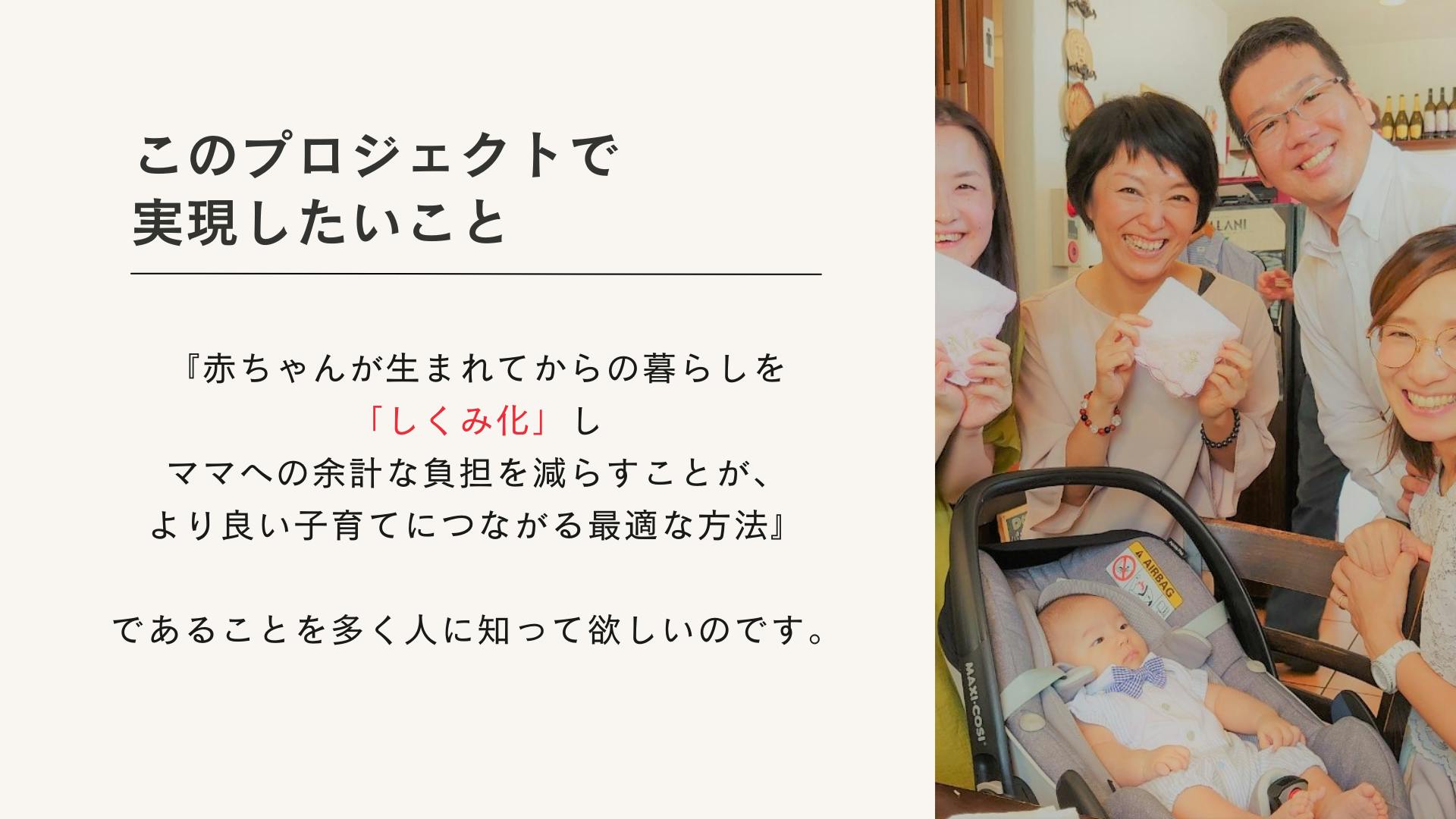 その仕組み作りが、日本中に広まれば、産後が大変で困るママもパパも、いなくなるはずです。
