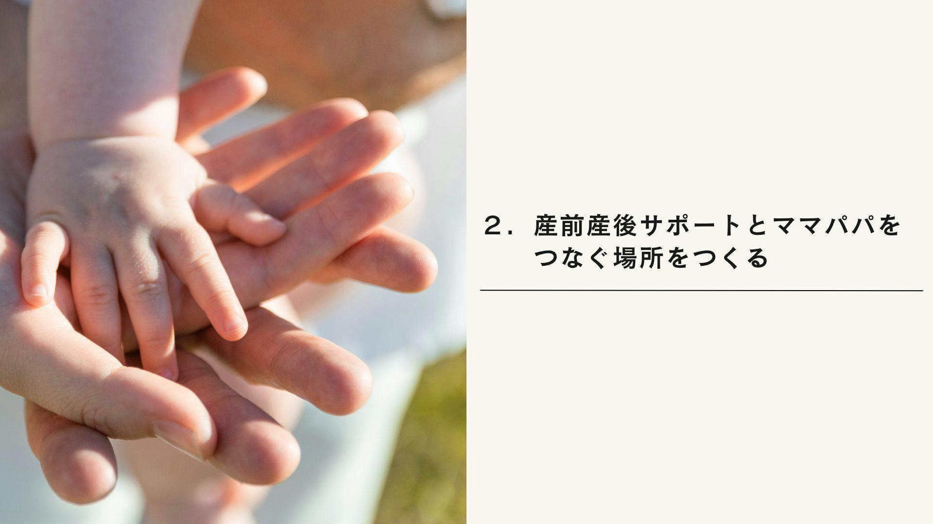 そこまでして初めて直接ママやパパたちに、活動を届けられる仕組みができあがると思います。必要な知識やサポートにつながることができるのが、当たり前の文化となっていく仕組み作りを目指します。