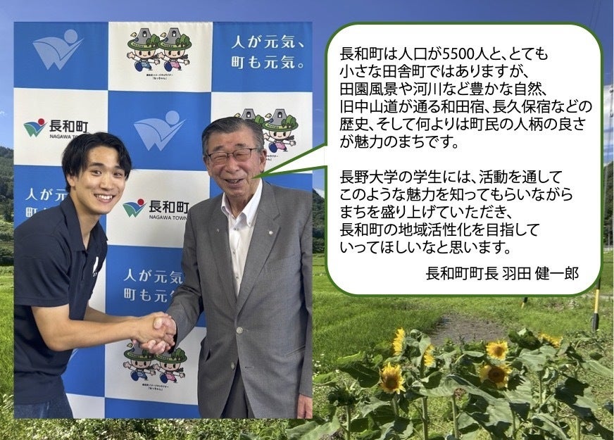 2024/09/13 12:39こんにちは!長野大学 歴史景観・リノベーションチームリーダーの克弥ですっ!先日、長和町役場にお邪魔させて頂きまして、町長へこの活動について報告させていただき、長和町でのバックアップ頂けると応援メッセージいただけました!〜応援メッセージ〜長和町は人口が5500人ととても小さな田舎町ではありますが、田園風景や河川など豊かな自然、旧中山道が通る和田宿、長久保宿などの歴史、そして何よりは町民の人柄の良さが魅力のまちです。長野大学の学生には、活動を通してこのような魅力を知ってもらいながら、まちを盛り上げていただき、長和町の地域活性化を目指していってほしいなと思います。 もっと見る