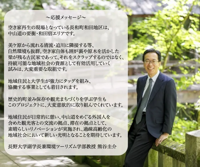 長野大学副学長兼 環境ツーリズム学部の熊谷教授より応援メッセージ頂きました!