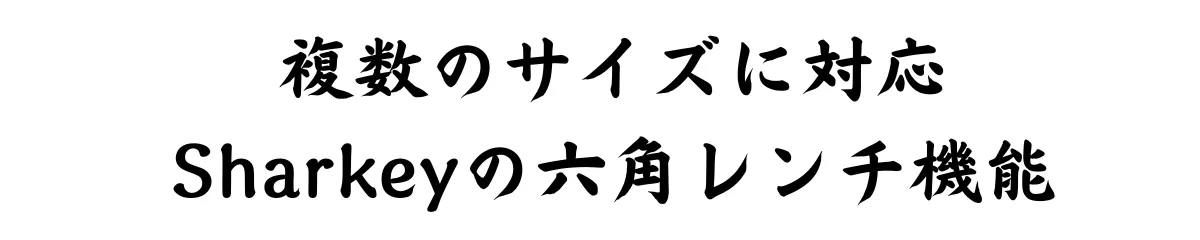 A:Sharkeyの六角レンチ機能は、14号、10号、8号、6号、4号のサイズに対応しています。