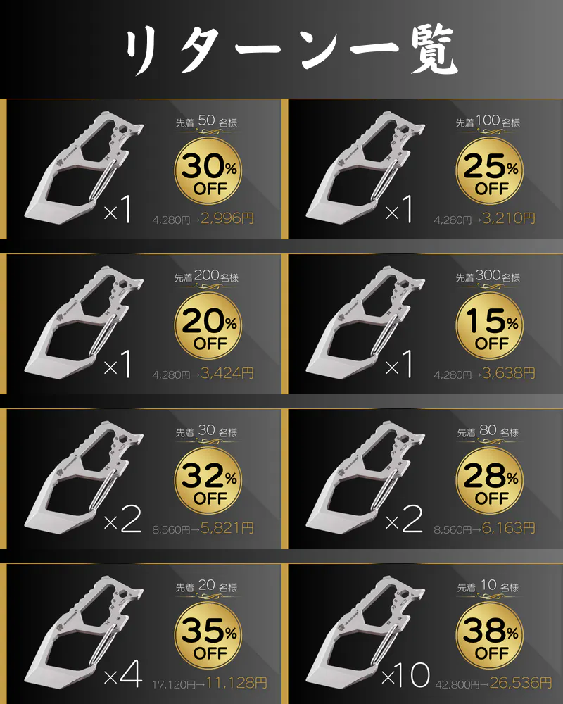 2025/07/26 10:35こちらの活動報告は支援者限定の公開です。【リピーター様限定】マルチツール『Sharkey』をもう1個プレゼント!