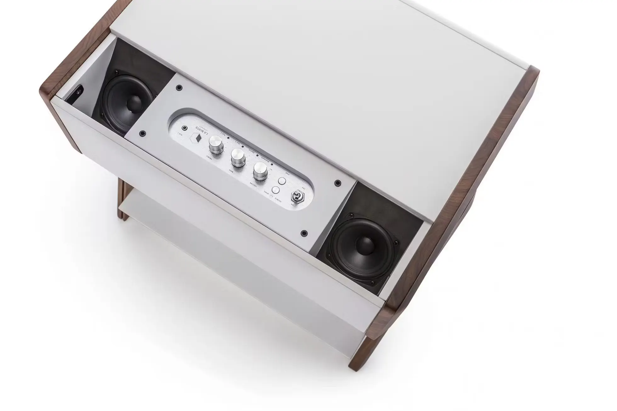 Hi-Fi Bluetoothスピーカー まるでコーヒーテーブルのように、ソファーサイドにぴったり収まるユニバーサルデザインの一体型3Dナチュラルサラウンドスピーカーシステム。 特許技術のWIDE SOUND2.0︎による3Dナチュラルサラウンドテクノロジー採用、迫力のあるサウンドをお楽しみください