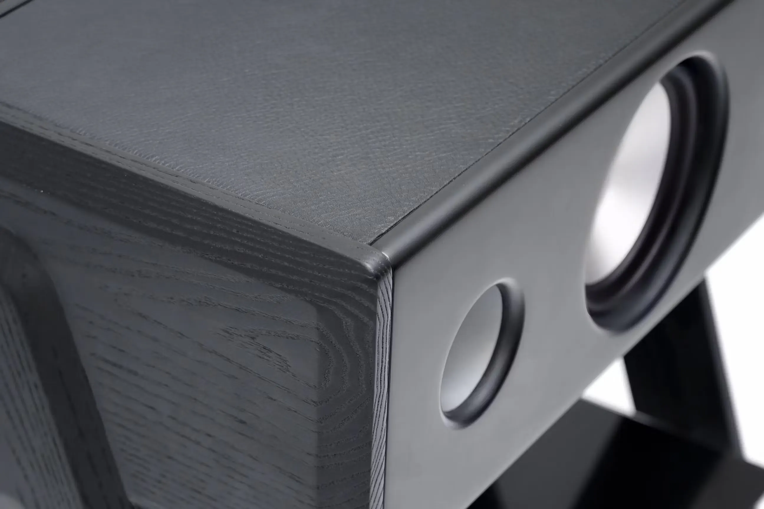 まるでコーヒーテーブルのように、ソファーサイドにぴったり収まるユニバーサルデザインの一体型3Dナチュラルサラウンドスピーカーシステムです。