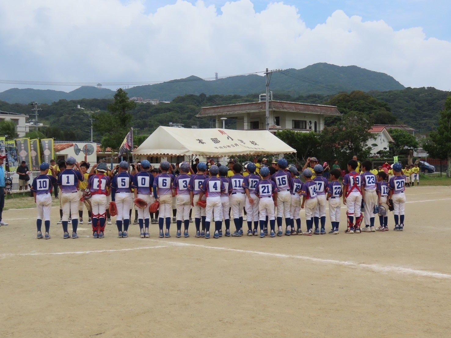 残念ながら、今大会優勝した、同じ本部町ライバルチーム、本部少年野球クラブさんに、サヨナラ負け(涙)。6回まで、1vs0とリード。先頭バッターに本塁打を打たれ、一気に本部少年野球クラブの流れに…その勢いを止める事が出来ずサヨナラ負けを喫してしまいました。