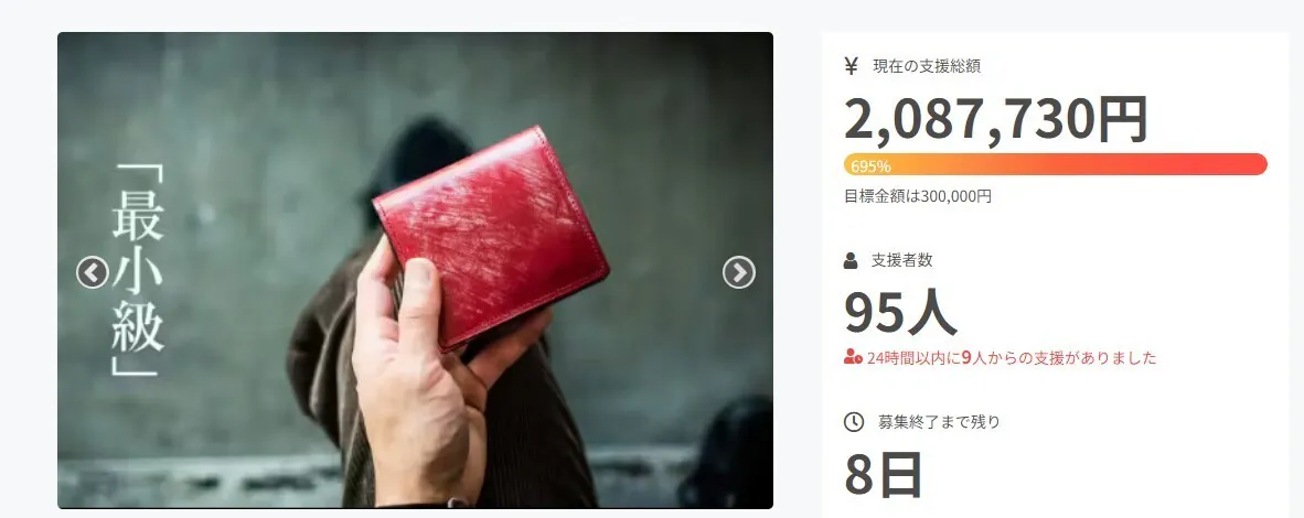 この度は「メンズのための極小二つ折り財布」に多大なるご支援を頂き、誠にありがとうございます。