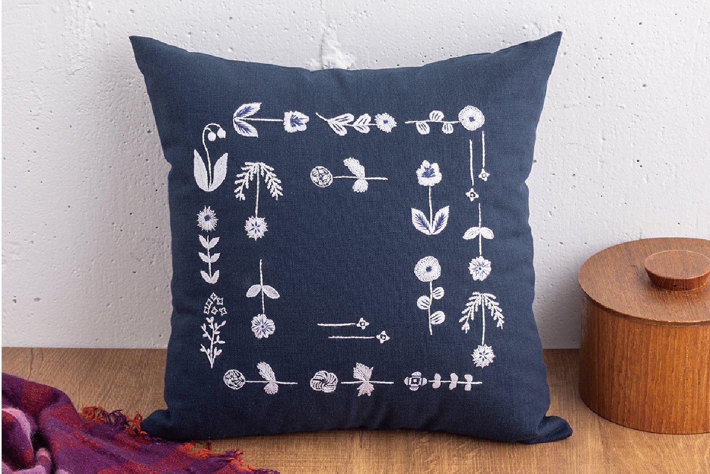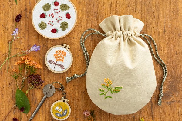 星燈社さんの、日本の四季から生まれる手描きならではのゆるやかな図案は、一針一針、心を込めて仕上げる刺繍とよく馴染みます。