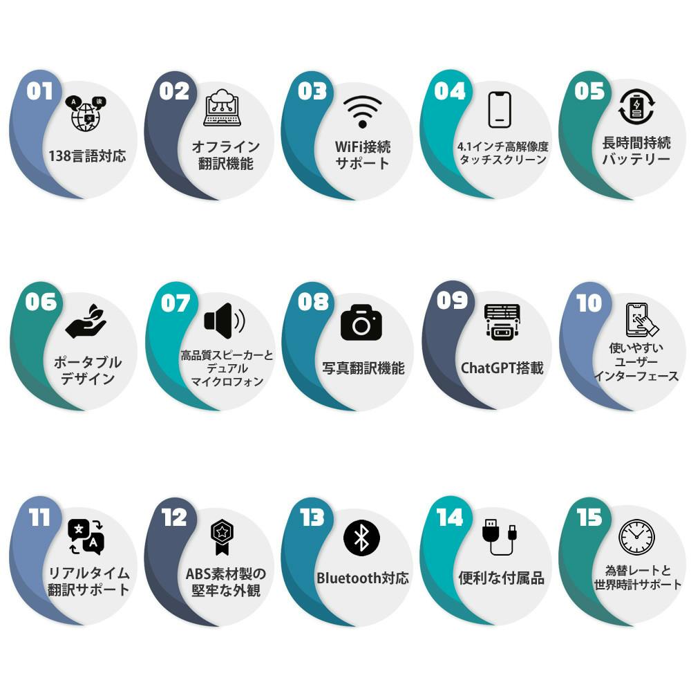 A: IZELL-T9proは多言語対応、高精度翻訳、オフライン機能、長持ちバッテリーなど、多機能でユーザーフレンドリーな特徴を備えています。