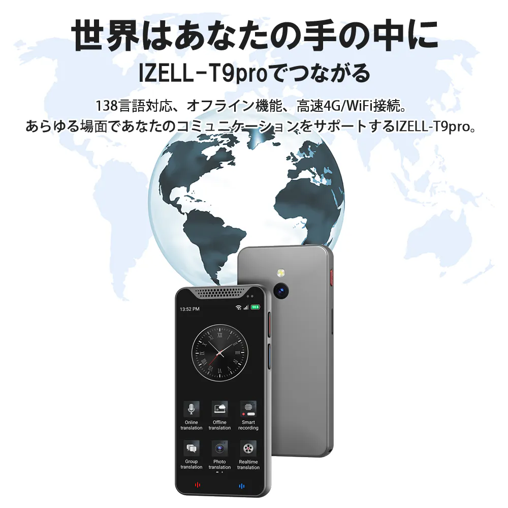 IZELL-T9proのオフライン翻訳機能はインターネットの届かない場所にいても、17言語の音声翻訳と42言語の写真翻訳機能があなたの言葉を世界に届けます。