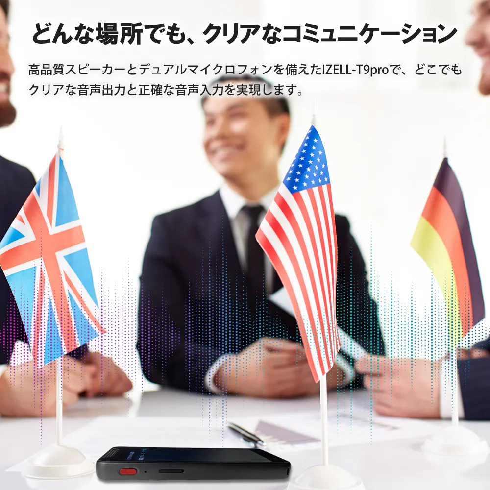 IZELL-T9proのリアルタイム翻訳サポートは、会話や会議が行われるその瞬間に、言語の壁を取り除く強力な機能です。