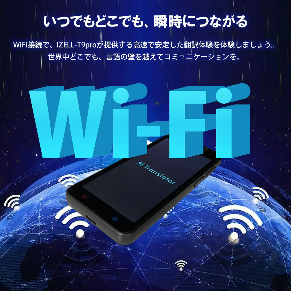 IZELL-T9proのWi-Fi接続サポートは、どこにいても高速で安定した翻訳体験を提供します。