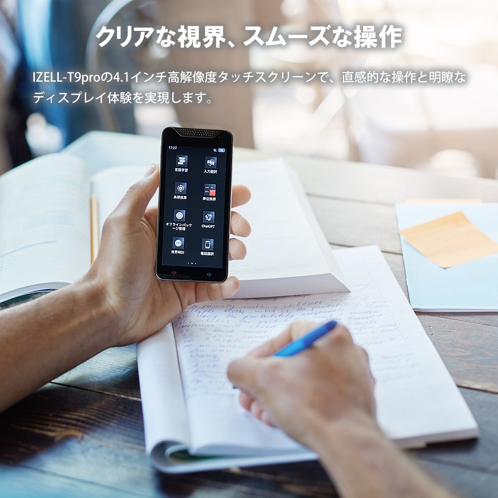 IZELL-T9proの4.1インチ高解像度タッチスクリーンは、細部に至るまでクリアで鮮明に表示され、直感的なタッチ操作が可能です。翻訳が必要な場面で、画面を見るだけで瞬時に必要な情報が手に入ります。