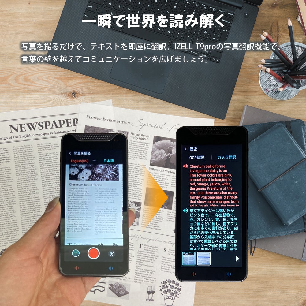 IZELL-T9proの写真翻訳機能は、テキストが含まれる写真を撮影するだけでその内容を瞬時に翻訳できます。