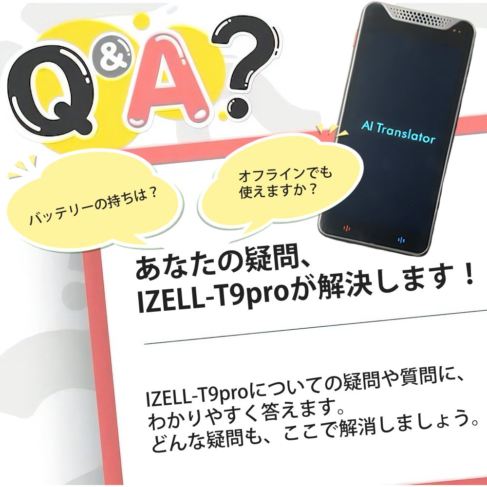 A: IZELL-T9proは多言語対応、高精度翻訳、オフライン機能、長持ちバッテリーなど、多機能でユーザーフレンドリーな特徴を備えています。
