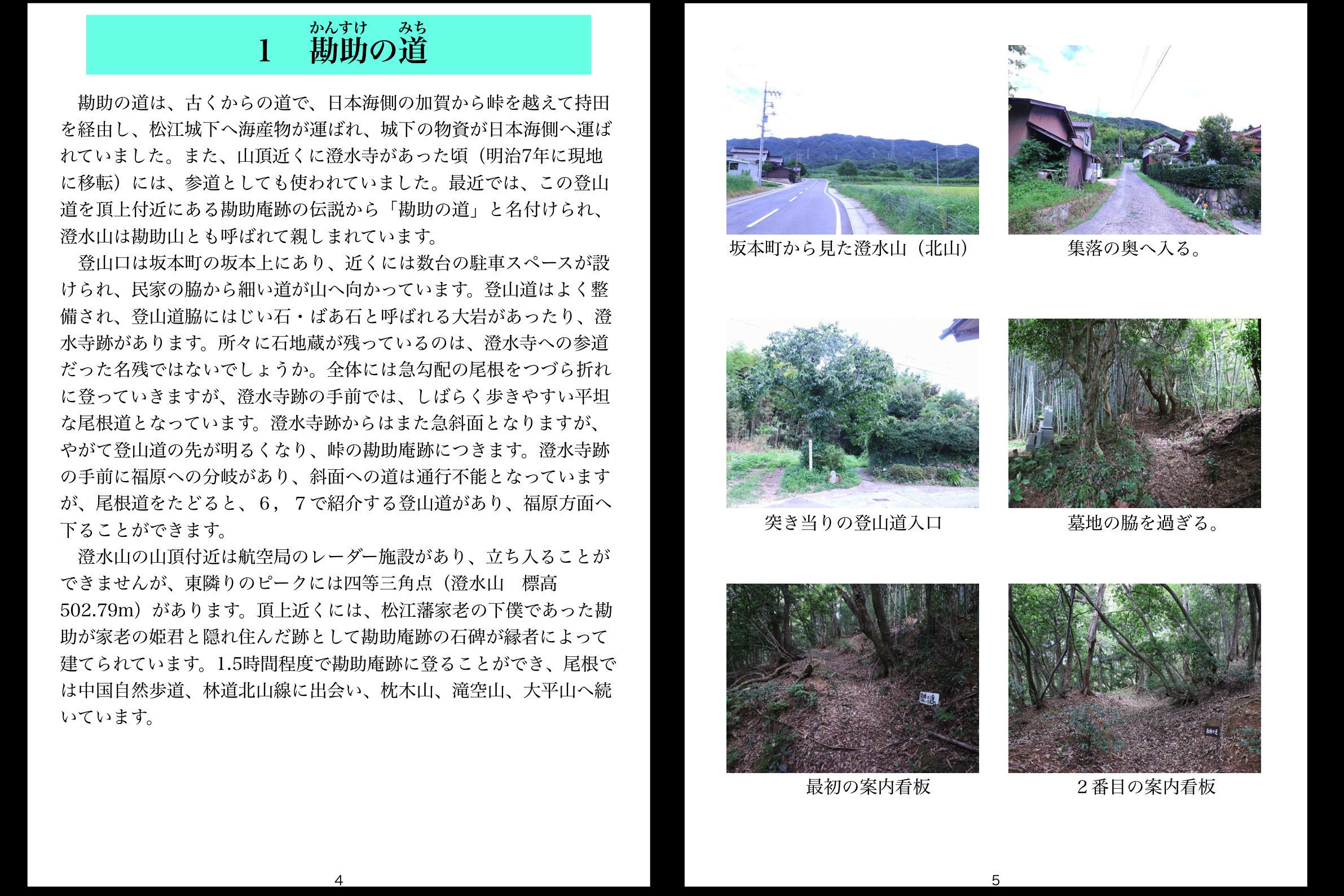 支援金額 5,000円 本プロジェクトの書籍「澄水山を愉しもう」1冊(165頁 1,430円)、前作「美保関往還・杵築往還を歩く」(186頁 1,650円)