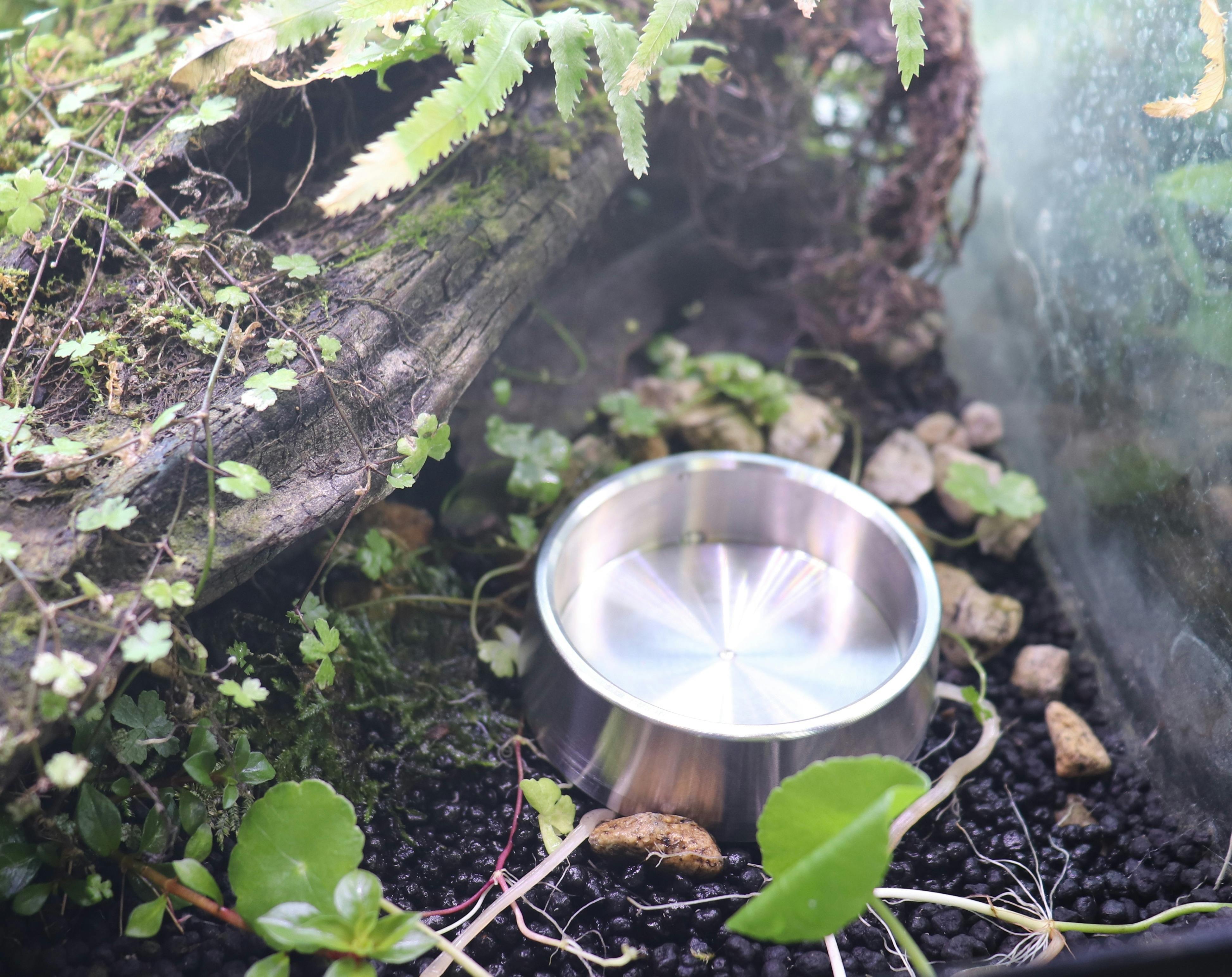 今までの爬虫類用の容器は陶器製や樹脂製の物が多く、水アカや汚れが付着しやすく、素材が軽い為にペットが足を掛け容器がひっくり返り中身をこぼす事が良くありました。