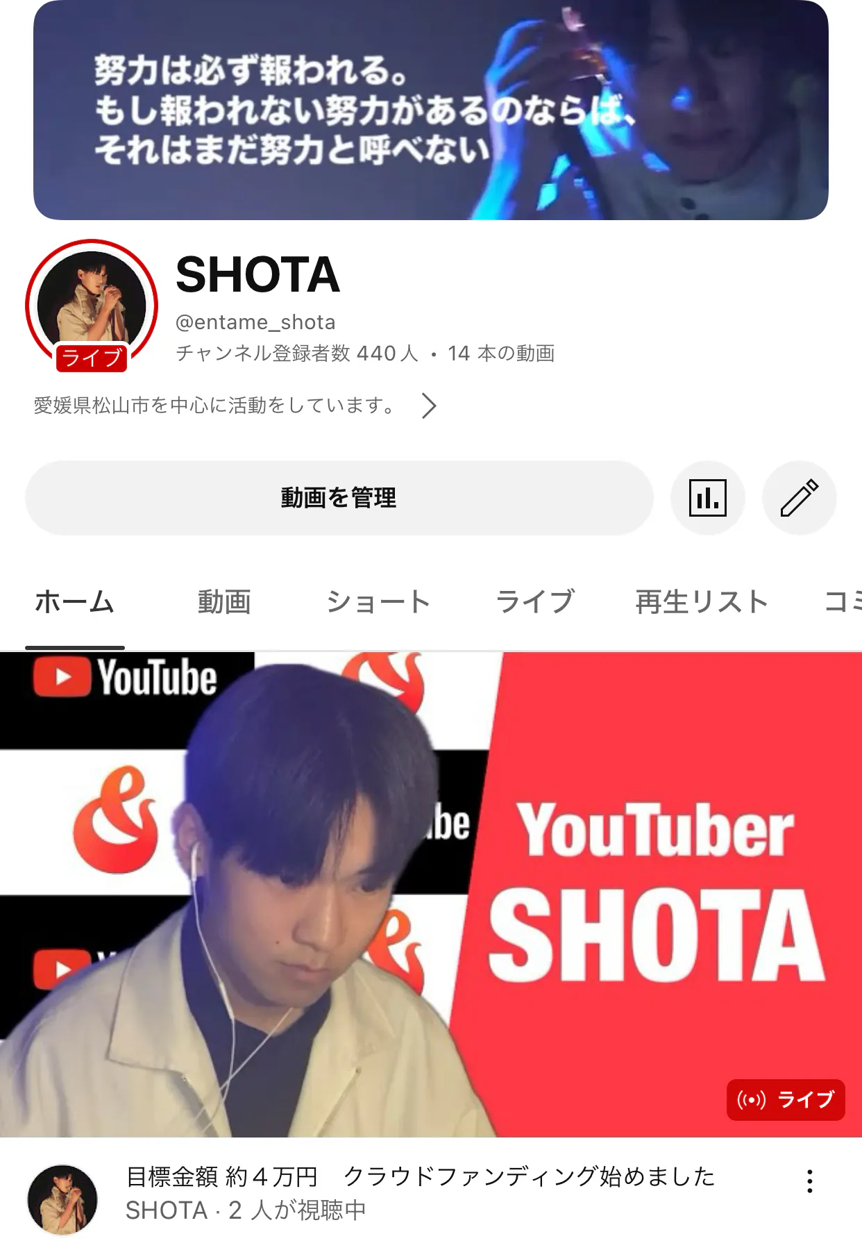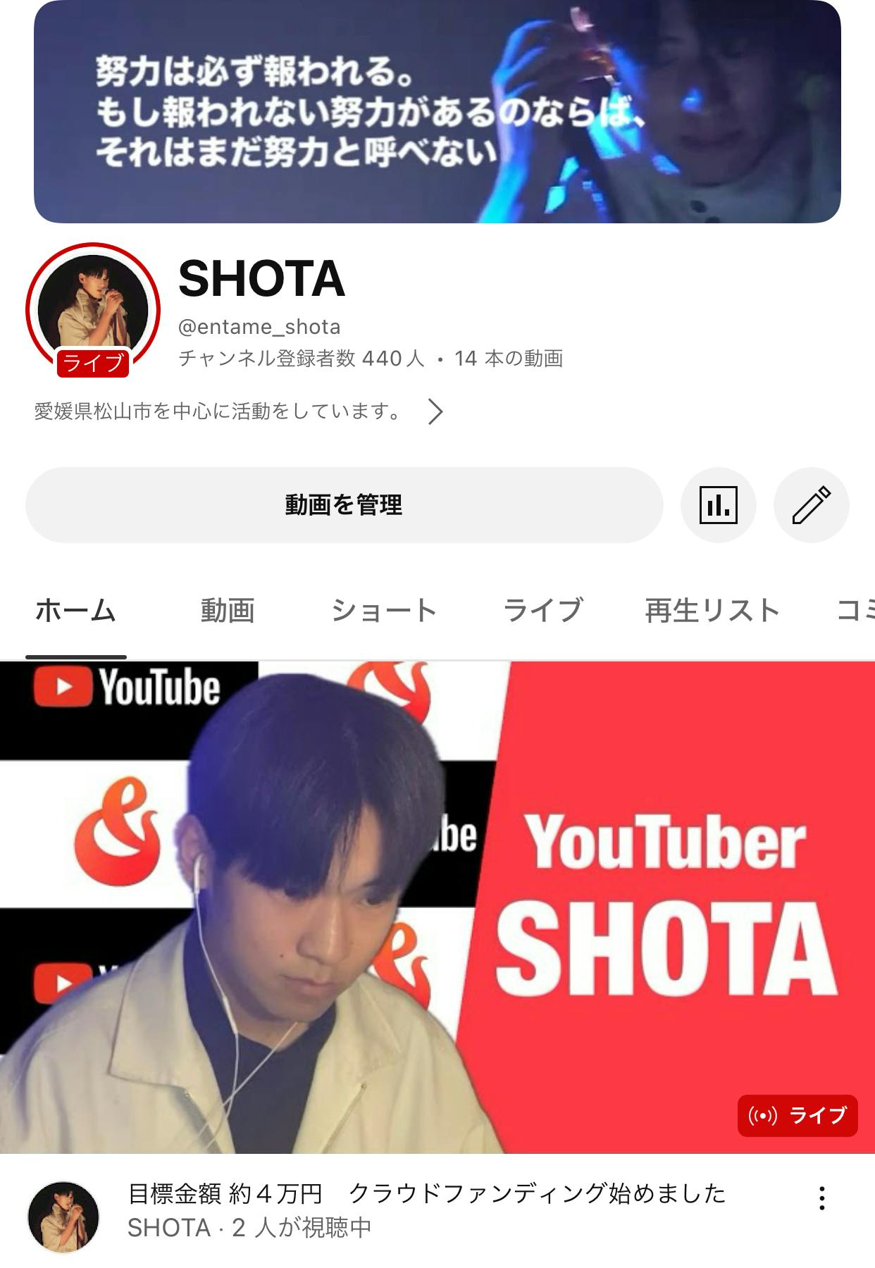 初めまして。愛媛県松山市でYouTubeの活動をしています。SHOTAです。