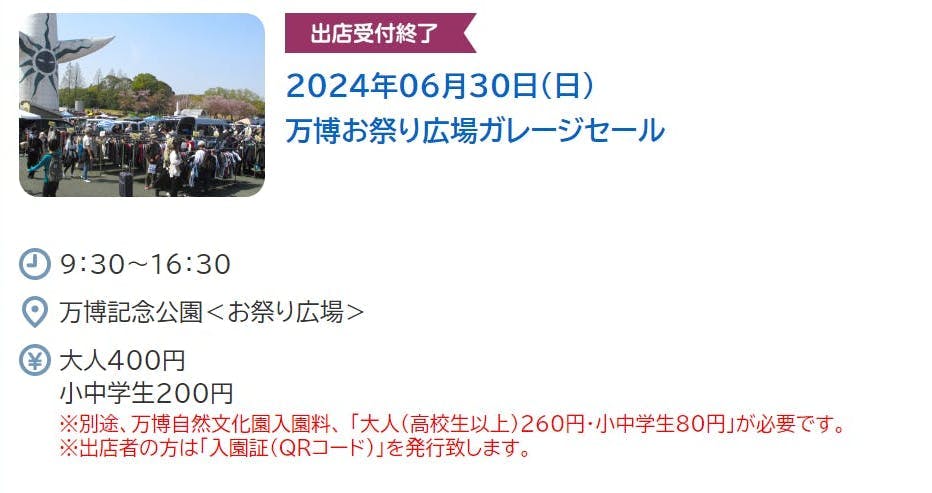 5月 掲載開始/万博お祭り広場ガレージセール申し込み