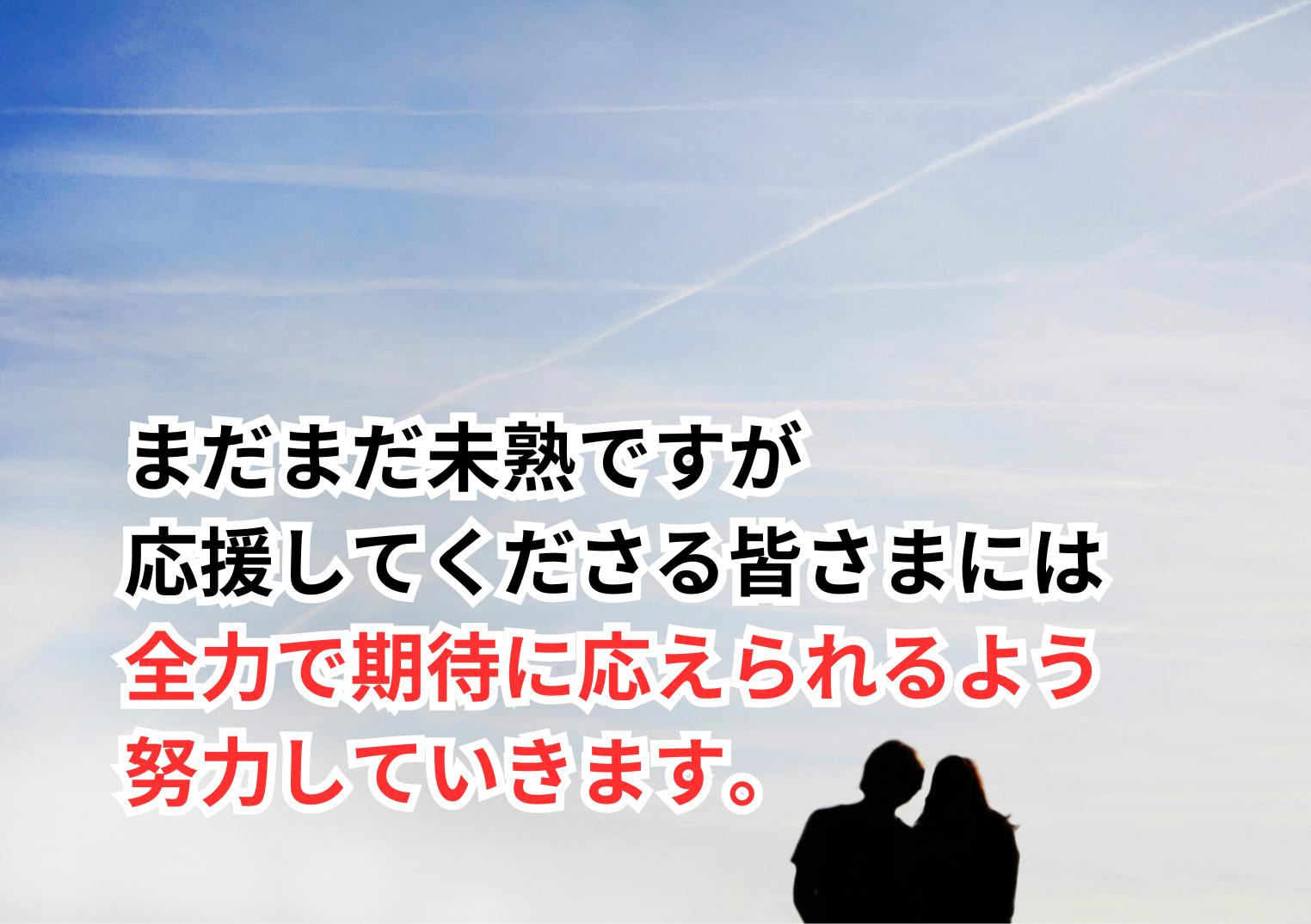 だからこそ、今度はお客様だけでなく、サービスを提供する僕ら夫婦とコーチ、カウンセラー陰ながら支えてくれている母と息子、そして、今まで味方でいてくれたお客様。関わる人全員が幸せになれるそんな事業をしていきたいです。