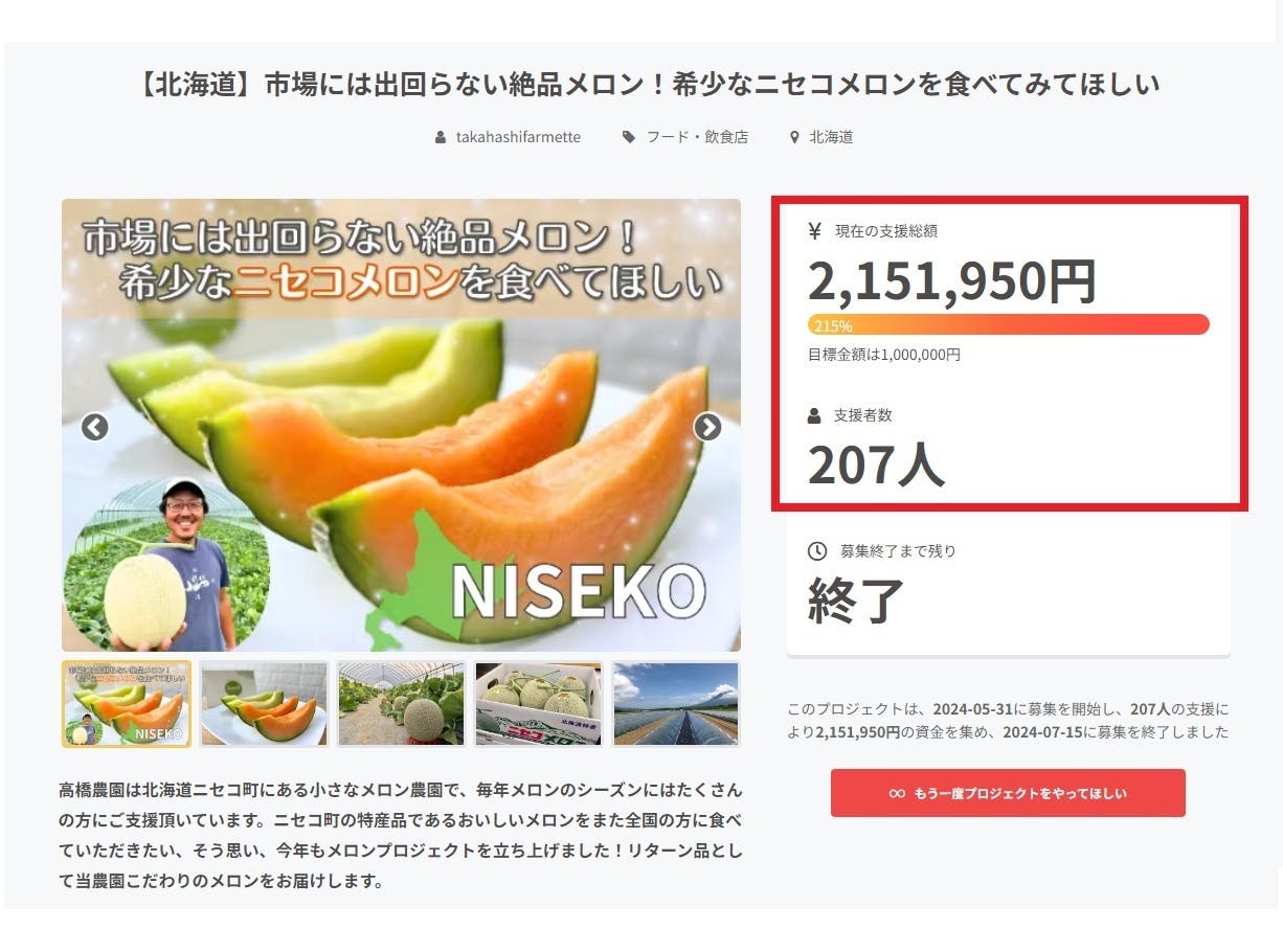 支援者の方が207人、支援総額は2,151,950円となり、目標金額の1,000,000円を達成することができました!