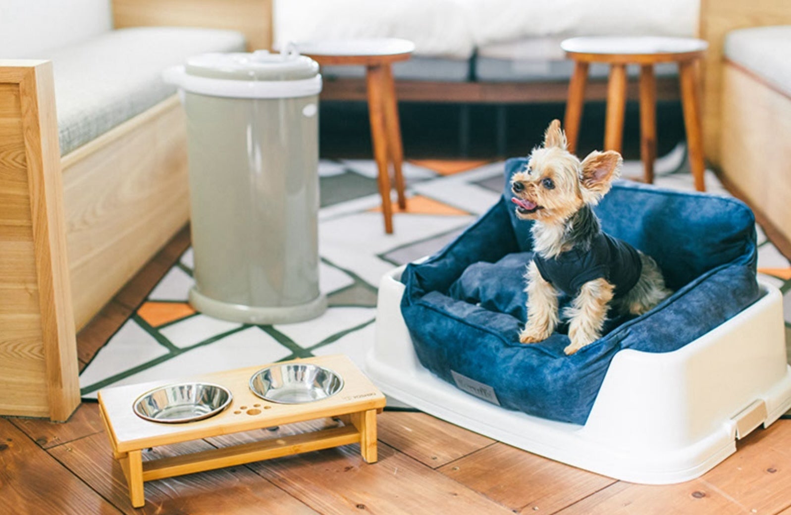 わんちゃん専用の足洗い場やベッドなど、愛犬と快適に過ごせるよう