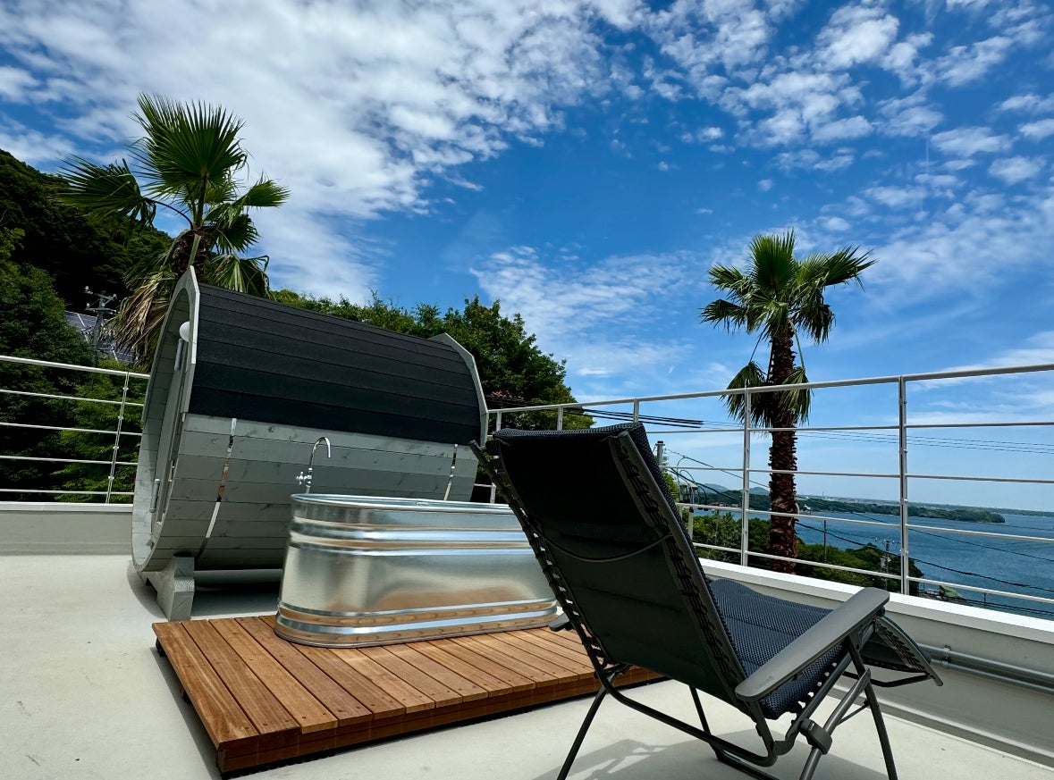ルーフトップスイートには専用のバレルサウナと水風呂の準備があり