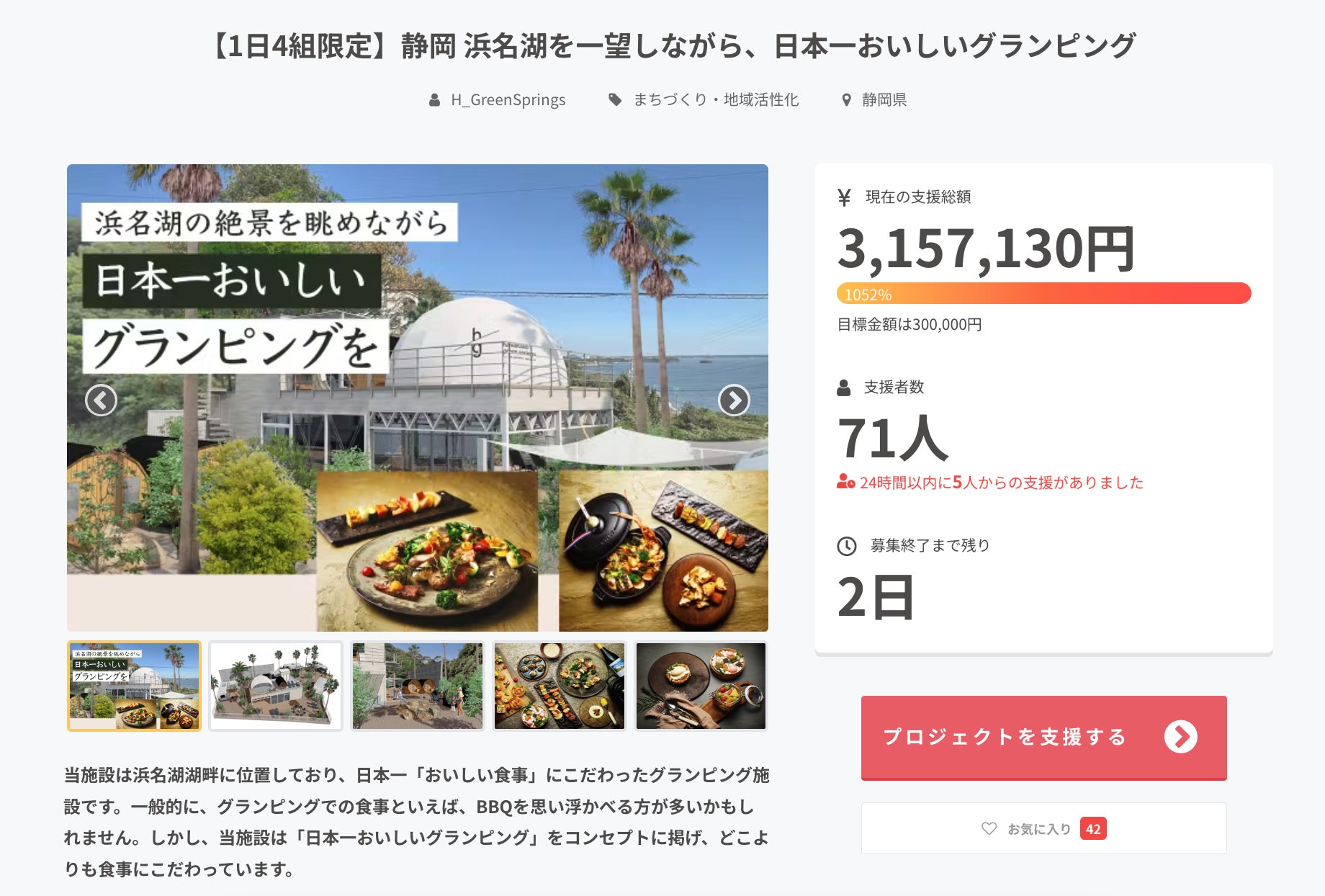 「日本一美味しいグランピング」=「浜名湖グリーンスプリングス」