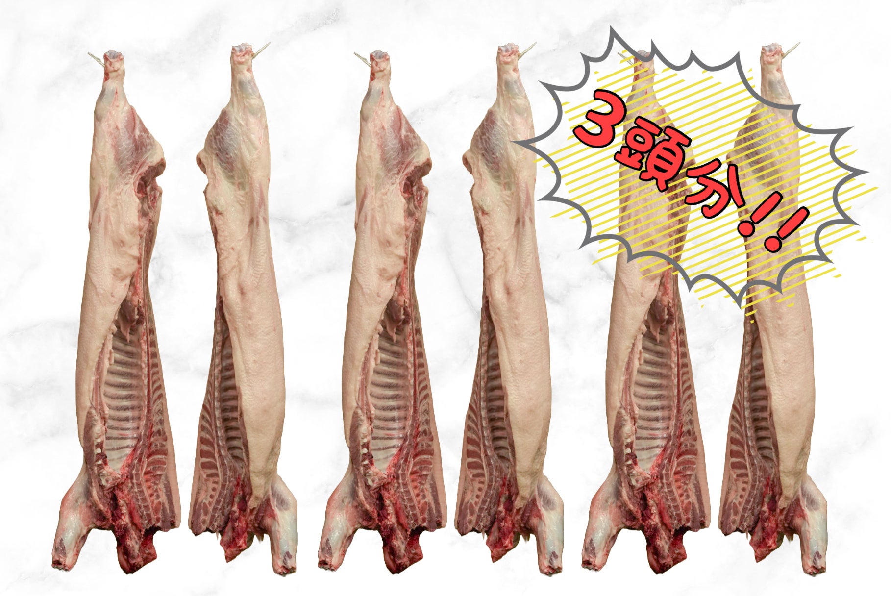 [13] 工場直送!マエダポークの“これが豚枝肉3頭分”です!