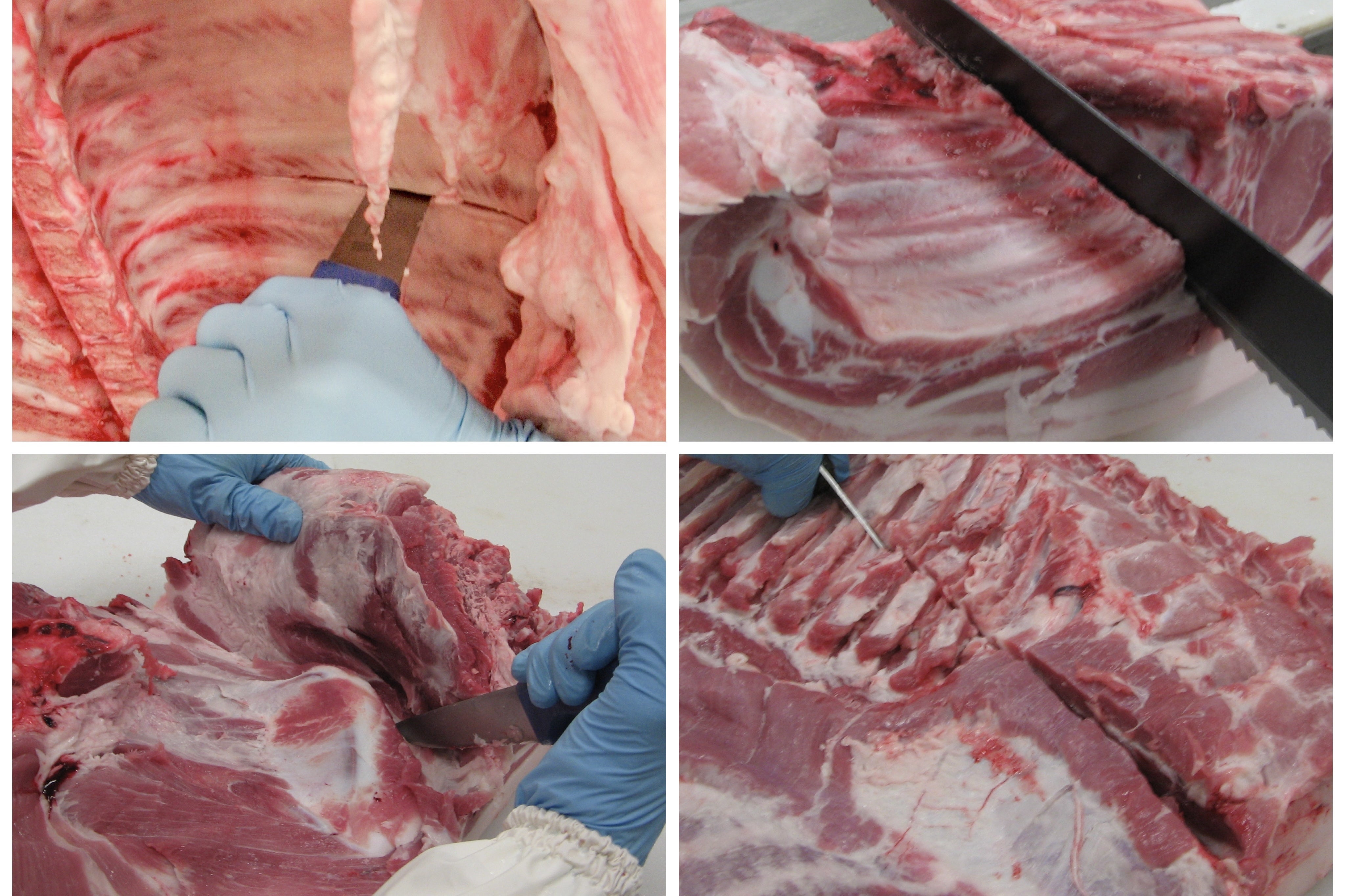 スーパーや精肉店の店頭に並ぶ前の作業になります。
