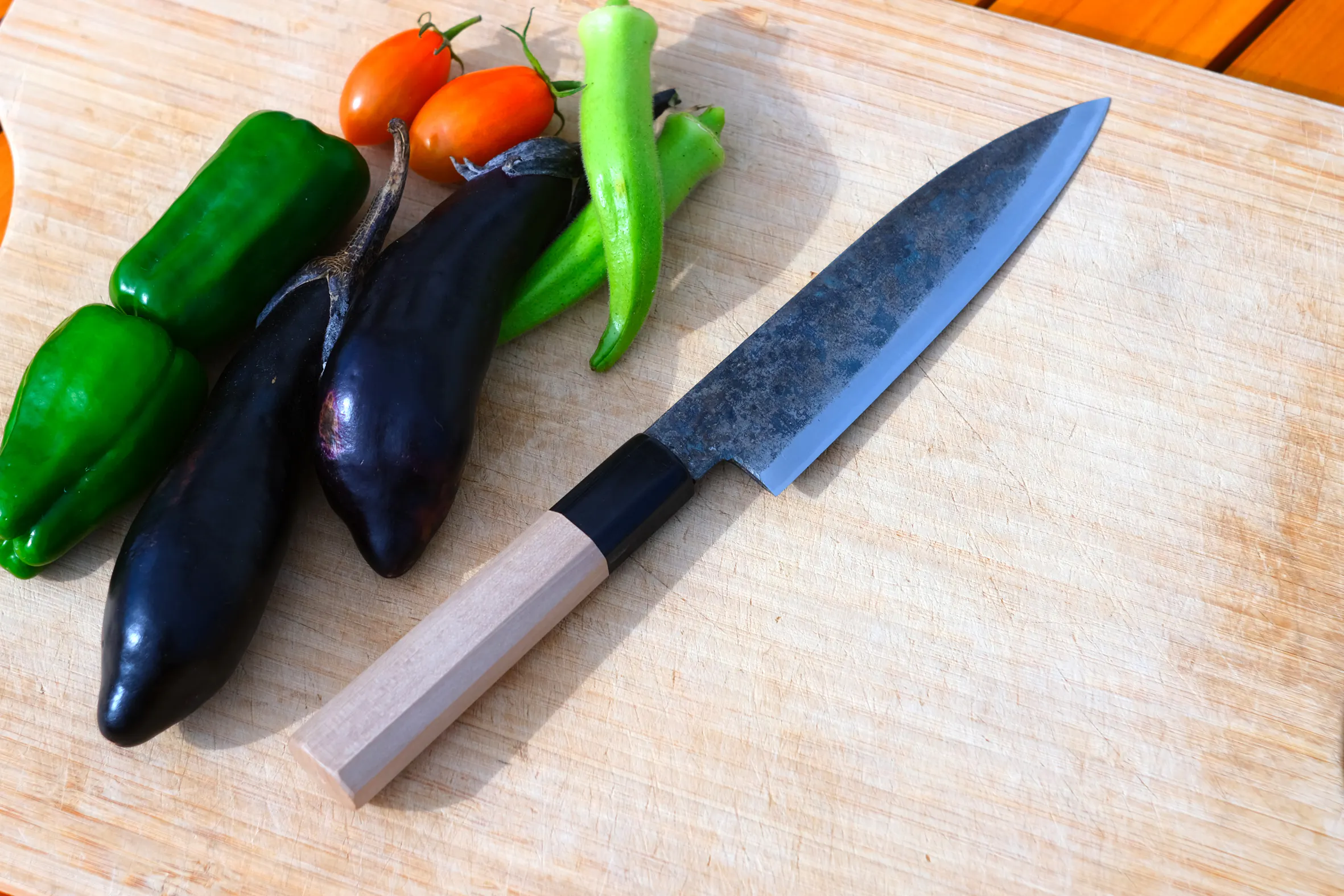 その方法は水焼き入れと油焼き入れがあり、水焼き入れの方が油焼き入れより行程難度が高いゆえに急激な冷却が可能ですのでより細かく締りのよい硬さと鋭い切れ味を持続させることができます。