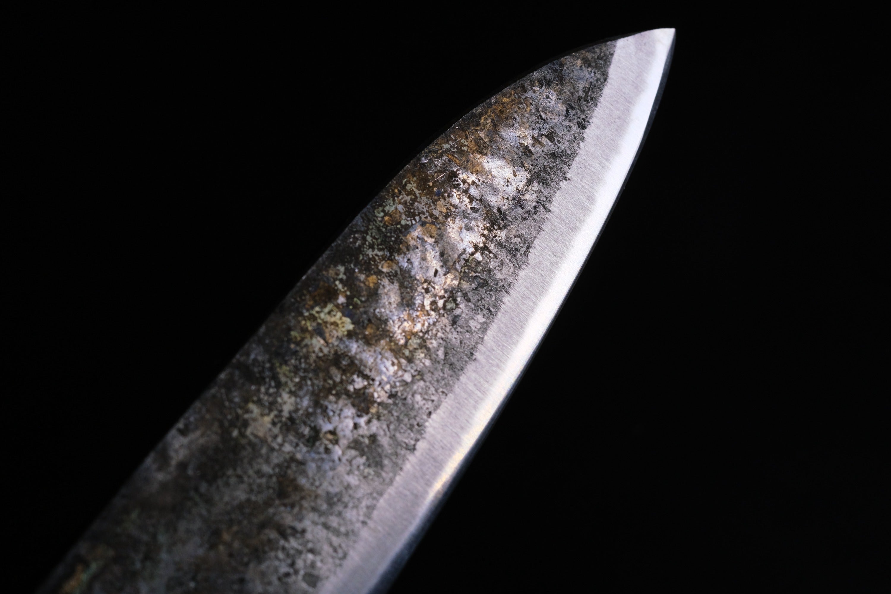 この「KUROUCHI」の名前の通り包丁表面の黒い部分は加熱時などで生成される酸化被膜です。その被膜をそのまま残した包丁を「黒打包丁」と呼びます。