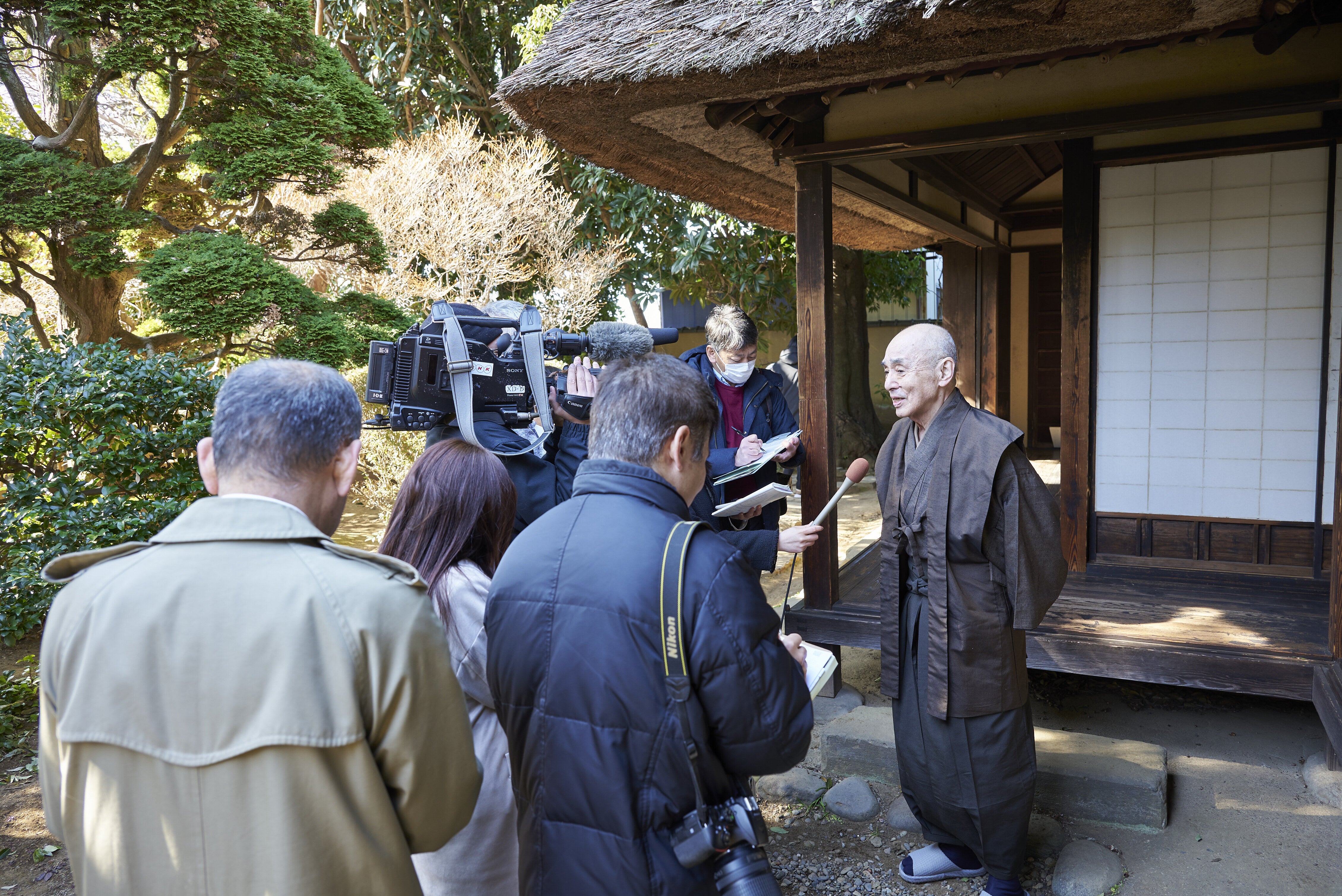 取材を受けるたかお鷹さん