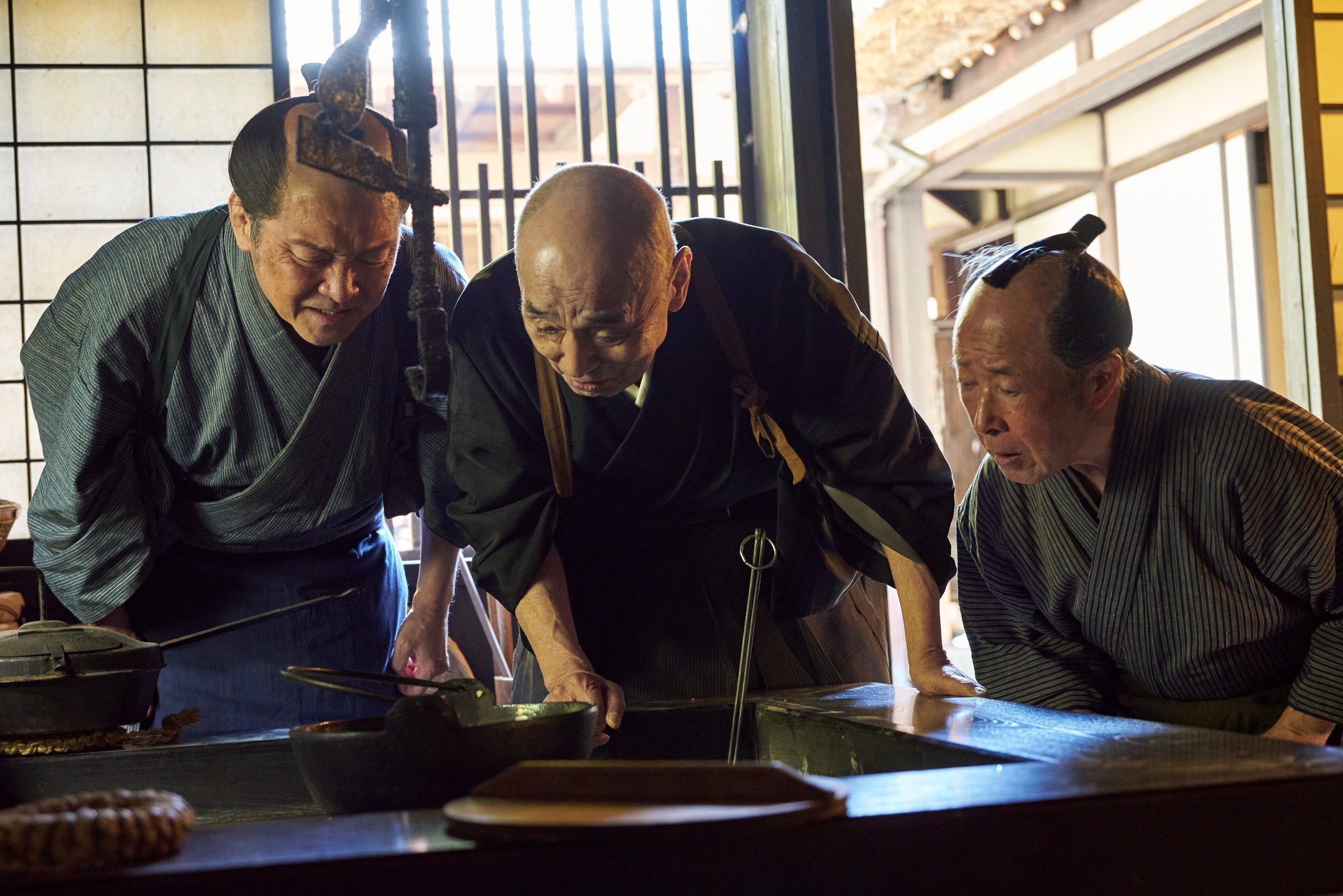 左:たかお鷹さん(鷹見泉石役)中央:渡辺勉 右:榊原郁恵さん
