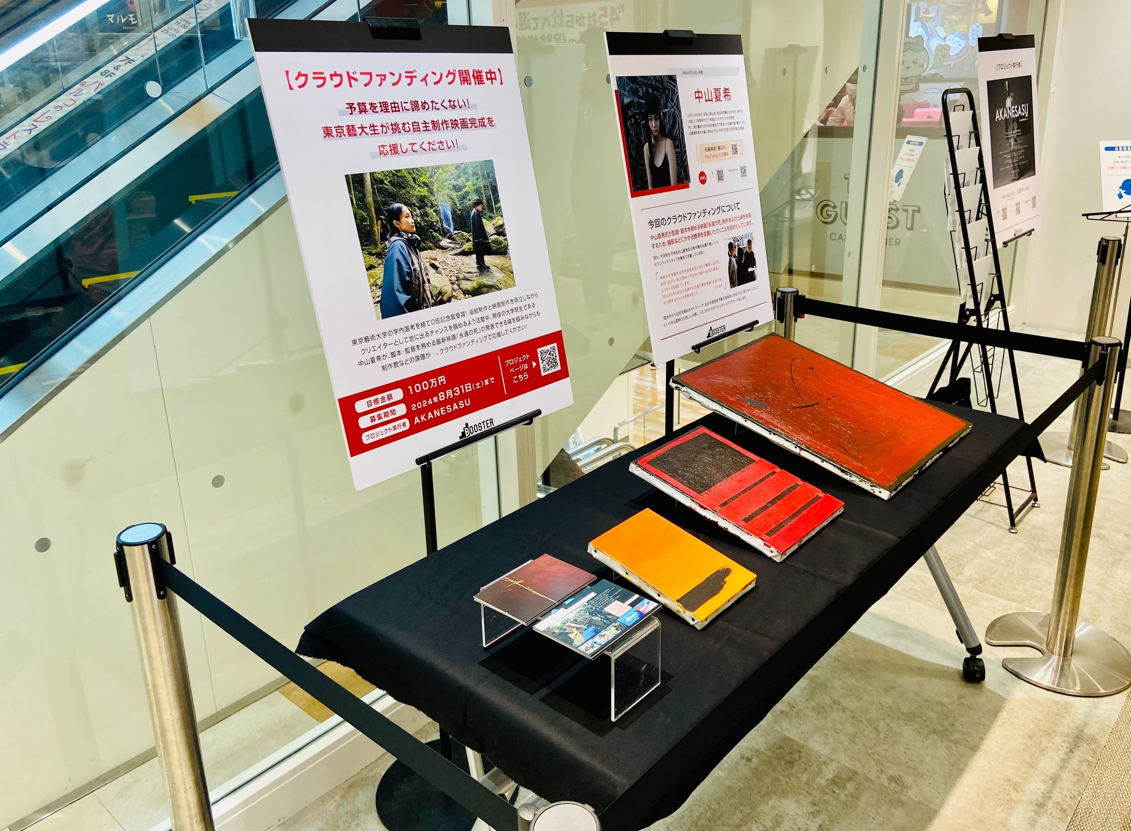 池袋PARCOさまのご厚意により、7階エスカレーター横に告知ブースを設置させていただけることになりました!本プロジェクトPOPやリターンの油絵(サンプル)の展示スペースを設置しております。是非お近くへお越しの際はご覧くださいませ。