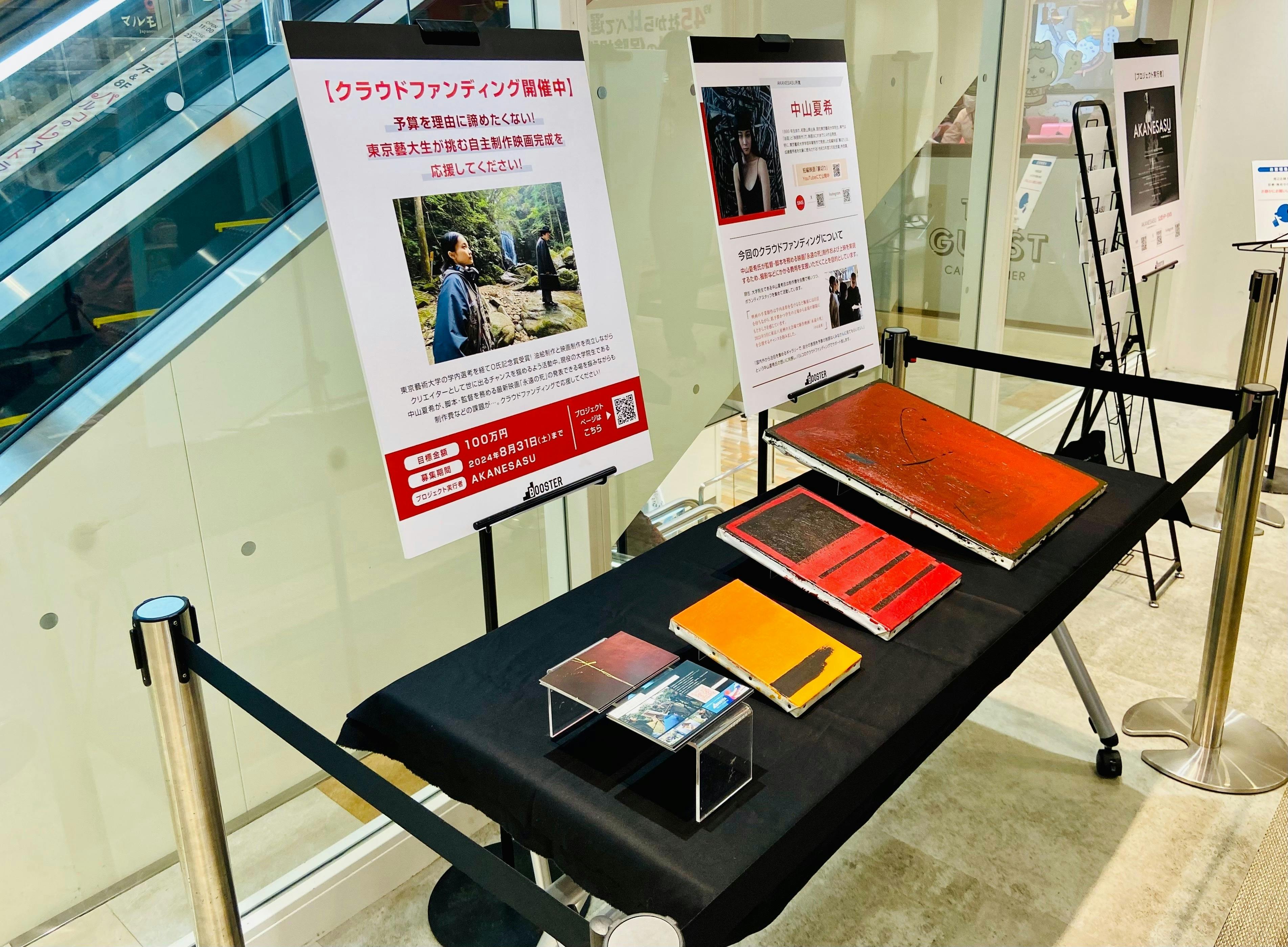 池袋PARCOさまのご厚意により、7階エスカレーター横に告知ブースを設置させていただけることになりました!本プロジェクトPOPやリターンの油絵(サンプル)の展示スペースを設置しております。是非お近くへお越しの際はご覧くださいませ。