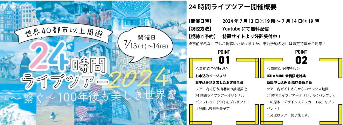 旅を決して諦めてほしくない!誰もが世界を気軽に楽しんでほしい!という想いで、第4回となる今回の24時間ライブツアーを全編Youtubeにて無料配信することに挑戦します!