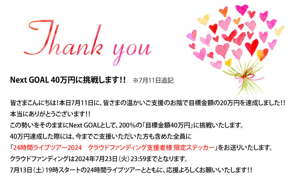 24時間オンラインライブツアー2024を一緒に楽しんでくださる応援団になっていただけたら嬉しいです!