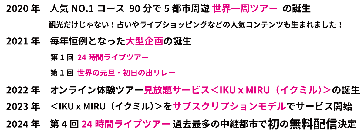 感染症が蔓延し始めた2020年にサービスを開始した「HISオンライン体験ツアー」は、この4年間で総計30万名以上の方に体験していただいています。リアル旅行ではできない、オンラインだからこそできるコンテンツを多数企画・実施してきました。
