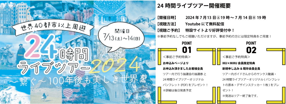 旅を決して諦めてほしくない!誰もが世界を気軽に楽しんでほしい!という想いで、第4回となる今回の24時間ライブツアーを全編Youtubeにて無料配信することに挑戦します!