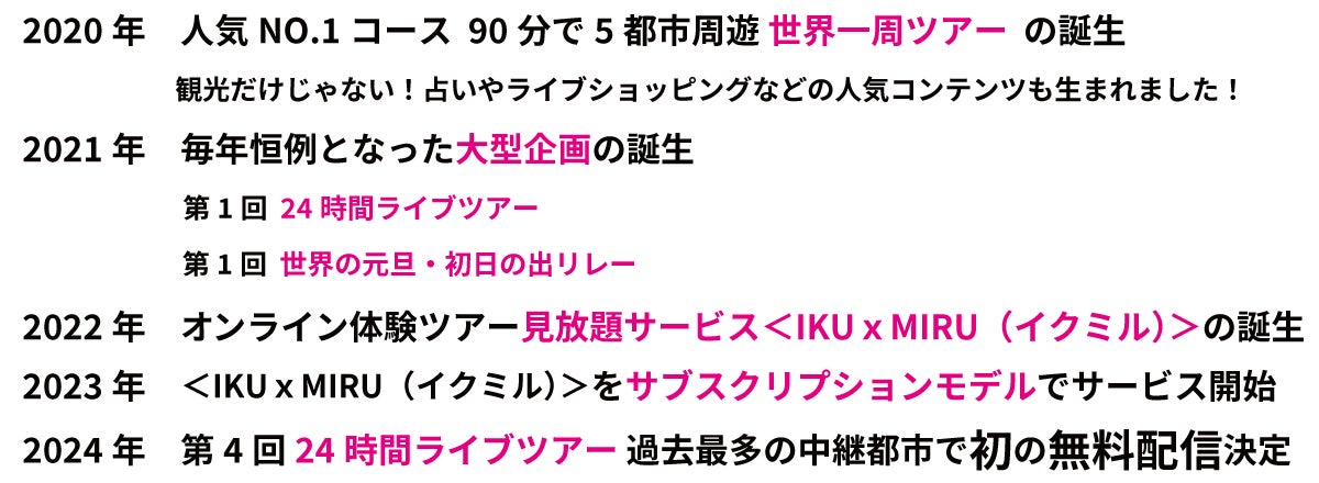 感染症が蔓延し始めた2020年にサービスを開始した「HISオンライン体験ツアー」は、この4年間で総計30万名以上の方に体験していただいています。リアル旅行ではできない、オンラインだからこそできるコンテンツを多数企画・実施してきました。