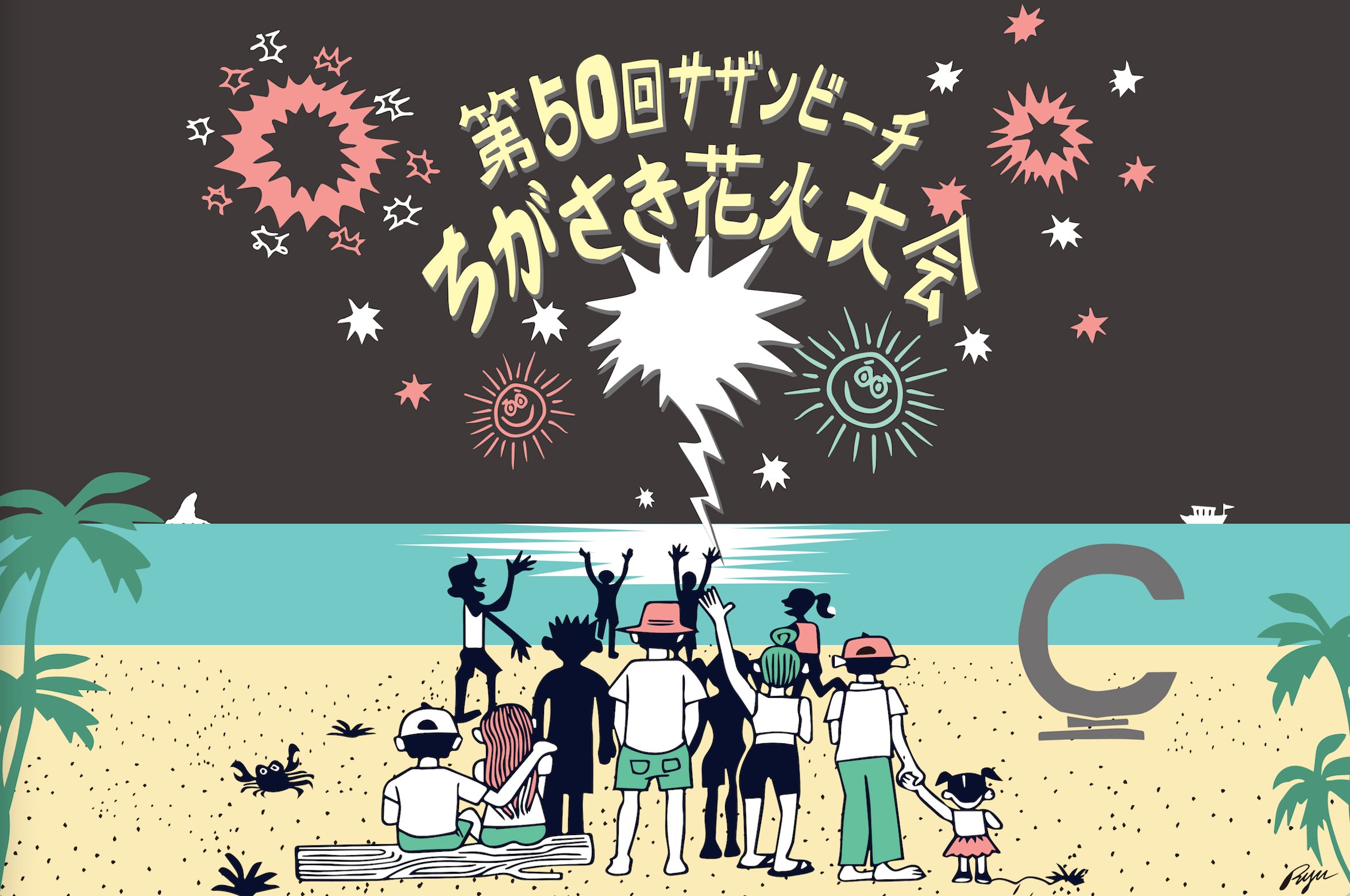 ちがさき花火大会のためだけに描かれたイラスト。ポップでかわいい雰囲気が魅力。