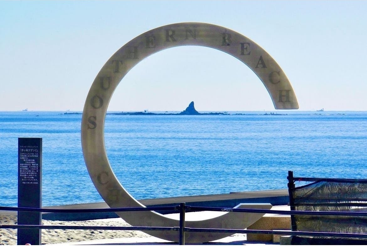 花火大会が開催されるサザンビーチ。烏帽子岩や江ノ島、天気がよければ富士山も見える名スポット。