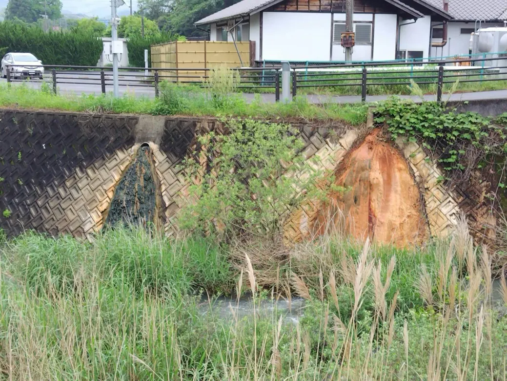 「山香温泉センター」は、大分でトップクラスの塩分濃度と言われ、運動機能障害やリュウマチ性疾患・美肌効果があるといわれています。成分が豊富であることから温泉が川へ流れる箇所は、長年の蓄積でこんなにも盛り上がり、褐色に染まっています。