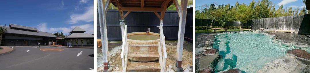 「風の郷温泉」は、2024年3月にリニューアルオープンした客室・食堂付きの温泉施設で、温泉は塩分濃度と炭化ガス濃度が強く肌に美肌効果があるといわれています。大露天風呂と温泉かけ流しの檜風呂でゆったりと開放的に過ごすことができるスポットです。