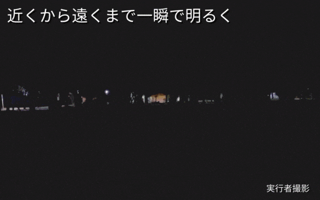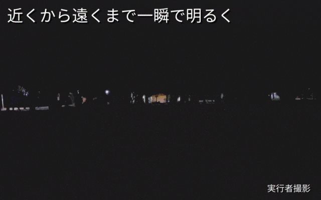 一瞬で遠くから近くまで明るく照らします。