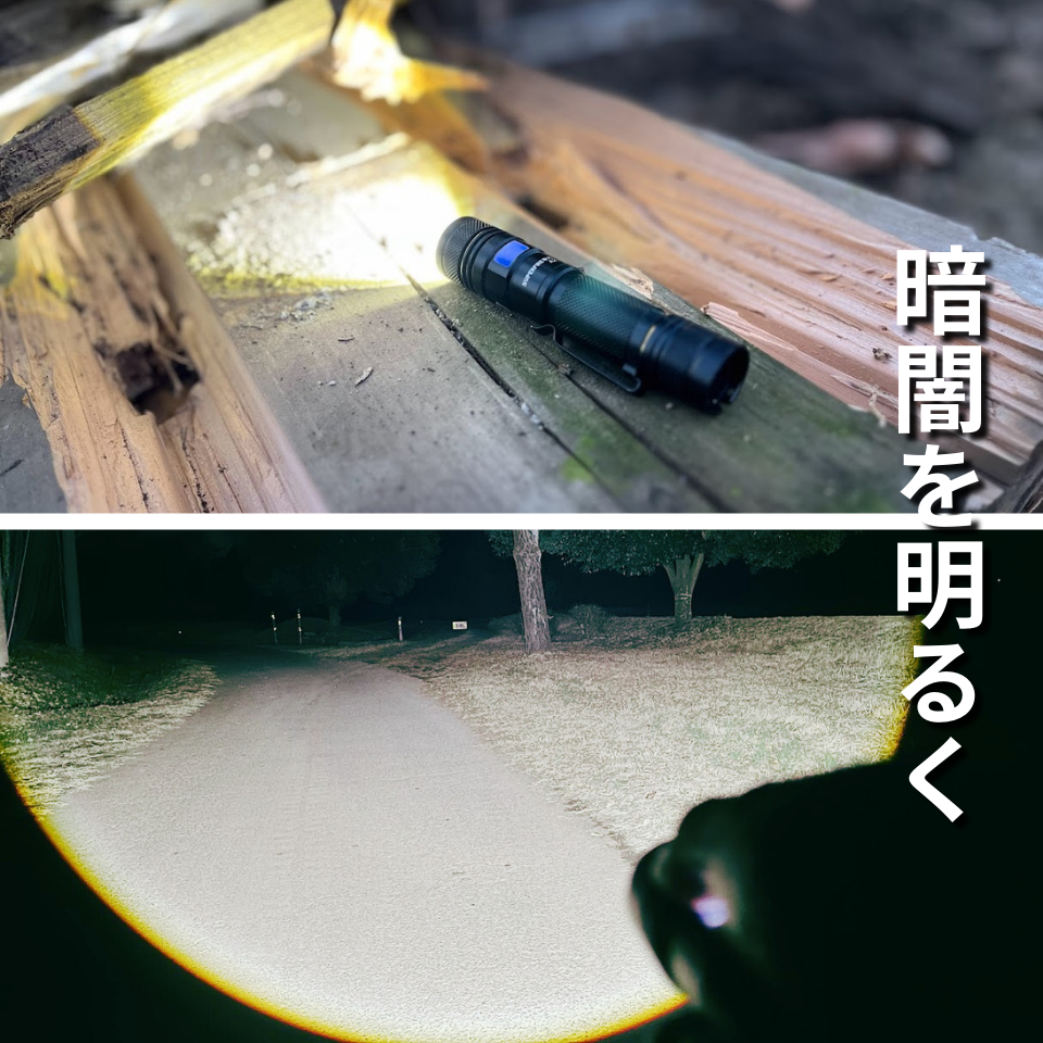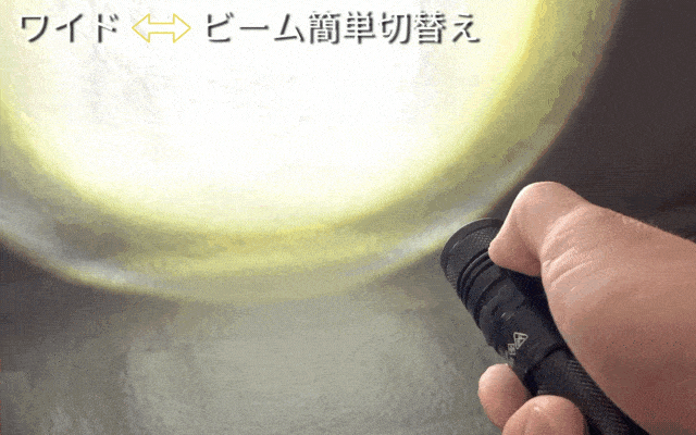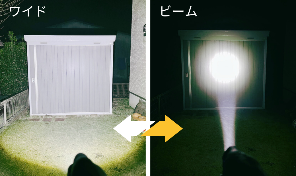 ワイドとビームの切り替えで暗闇を一瞬で明るくします。