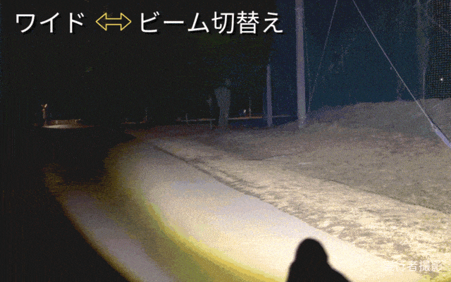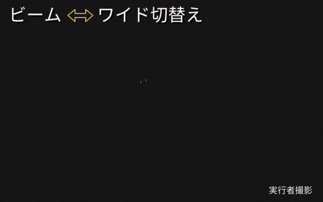 ワイドモードで近くを照らし、ビームモードで遠くを照らす。