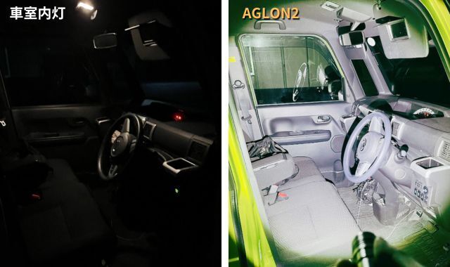 車内で探し物をする時、室内灯は暗くて探すのが大変、AGLON2なら一瞬で探せます。