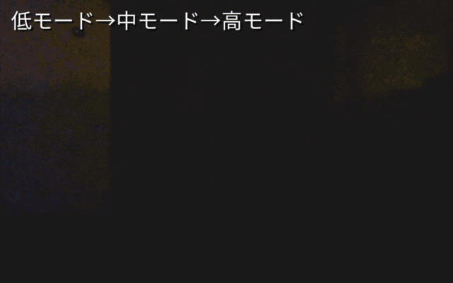 ワイドモードでの低モード→中モード→高モードへの切替え。