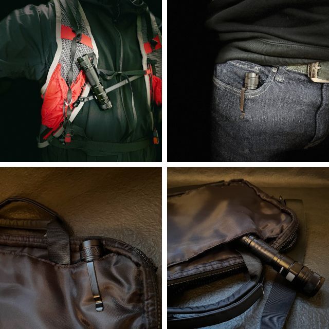 Wクリップでジーンズやバックパック、バックなどの様々な場所に掛けて持ち運ぶことができます。コンパクトなので、常に携帯が可能です。